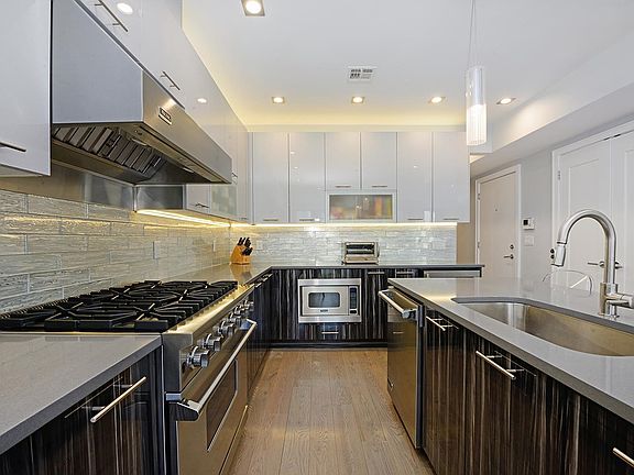 With almost 2300 square feet of living space on the parlor level and 2nd floor, along with a massive 900 square foot garden level backyard, this beautifully gut renovated 3BR + Den/3.5 BATH duplex is a true rarity. One of the largest storage areas in Hoboken runs under the building right off the backyard and it spans almost the entire length/width of the unit. The wide open kitchen has Caesarstone Quartz countertops, an abundance of stunning customized cabinets with a glass-tile backsplash, pristine Viking appliances, a wine refrigerator, and a large pantry/storage room. Floor-to-ceiling east facing sliding doors with a gorgeous glass railing staircase leads you to the enormous 22' wide yard, while a uniquely-styled glass cable-railing staircase takes you to the upstairs bedrooms. Meticulously designed walk-in closets, a washer/dryer room with oversized stackable Electrolux units, and exquisite wide-planked Oak floors lined throughout are just some of the other notable features. This is a one-of-a-kind offering at 8th & Garden in the heart of Hoboken! *Seller will pay for 2 years of parking at the 9th & Garden ST Garage, located just a block away*