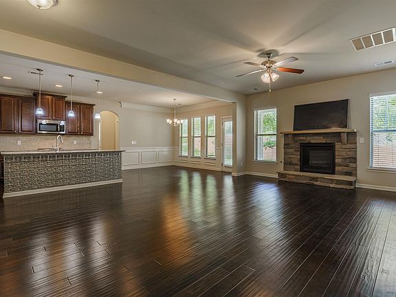Need more living space? Add this six-bedroom, three and one-half bath Lake Carolina- Sandy Glen home to the top of your list. Built-in 2017, it's a short stroll to Lake Carolina's waterfront and an open floorplan that is practical and elegant. As you enter the foyer, you'll take in lots of natural light and a grand entrance with hardwood flooring that flows into the great room, kitchen, and dining area. The great room offers a fireplace and access to the covered back patio. The eat-in kitchen has everything that you could ask for, a double-oven, granite countertops, a backsplash, hardwood flooring, a gas range, lots of cabinetry, and a storage pantry. The owner's suite is on the main level and has its own private bathroom, a walk-in closet, and double sinks. Other areas downstairs include a formal living room next to the front entry, and an additional room off of the kitchen where you can create your own flex space. Upstairs you enter into a large living room that mirrors two Jack & Jill bathrooms that are shared between four of the bedrooms. The sixth bedroom is large enough to be an upstairs office, playroom, or entertainment space. This property is located in a newer phase of Lake Carolina on a sizable .38-acre lot that backs up to a private Woodline. In addition, there is plenty of room for parking in the driveway and the garage spaces for three vehicles. Walk to Elementary & Middle School & YMCA (zoned for Blythewood High w/Ridgeview Option).