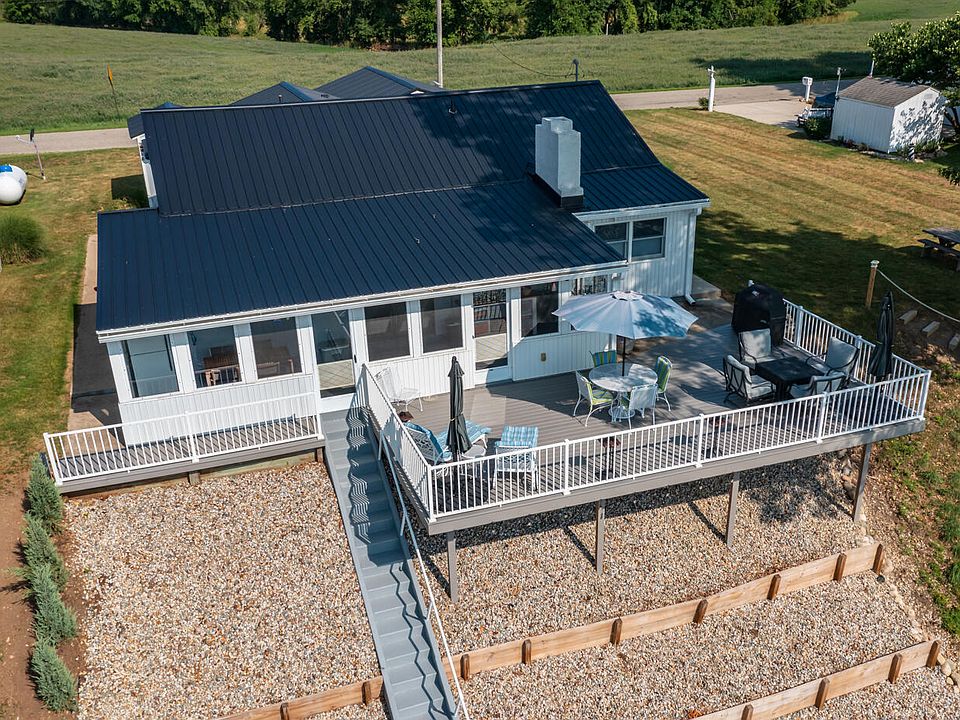 100' of dock. Nicely maintained for the last 20 years with new 40 year metal roof and gutters, extra-large composite