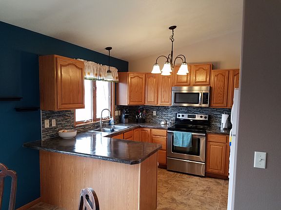 Beautiful move-in ready home located in southeastern Rapid City near the hospital, parks, and shopping. 4 bedroom, 2 bath, large 2 car garage with vaulted ceilings. Kitchen features a breakfast bar with newly updated countertops, backsplash, and flooring. Large master bedroom with walk-in closet has access to the main level bathroom. The lower level features a large family/living room, 2 good sized bedrooms, laundry room and second bathroom. This property also features updated landscaping, sprinkler system, fully fenced backyard with custom built fire pit, large storage shed, and RV parking