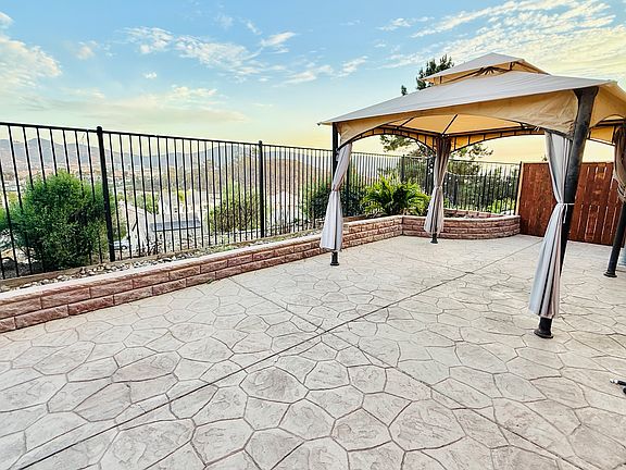 Welcome to your dream rental home at 737 Helmsdale Rd in the prestigious gated community of Vallecitos Ridge, San Marcos, CA 92069, featuring a stunning 5-bedroom, 3-bathroom single-family residence with 2,761 square feet of spacious living offering breathtaking panoramic city and mountain views. Step inside to an inviting open floor plan with high vaulted ceilings, recessed lighting, custom blinds, and a full bedroom and bathroom on the main level, perfect for multi-generational living or remote work. The gourmet kitchen delights with granite countertops, upgraded cabinets, a large island, and breakfast bar, complemented by dual-zoned AC, solar-assisted heating and cooling, and a cozy fireplace. Outside, enjoy the stamped concrete patio, attached 2-car garage with parking for up to 4 vehicles, and included modern appliances like a dishwasher, dryer, microwave, range/oven, and refrigerator. Nestled in a desirable community and proximity to top-rated schools, parks, shopping, dining, California State University San Marcos and major highways schedule a tour of this pristine gem today! 1 year lease
