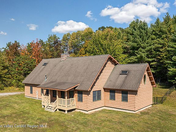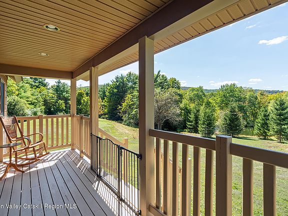 Get ready to fall in love with this Stunning Adirondack-Style Retreat on 16 Acres. This home radiates warmth, natural beauty, and easy living. Set on 16 private acres with scenic walking trails, stone walls, and a healthy fish-stocked pond, it offers true seclusion with no neighbors in sight yet is just 10 minutes from Middleburgh and moments away from Partridge Run State Land. Inside, you'll find soaring ceilings with exposed beams, an open floor plan, natural wood accents, and earthy tones throughout. The rocking-chair front porch is the perfect place to relax and take in views of the pond and surrounding woods. Some key features are. Brand-new Cummins whole-house generator the dual-zone central air and central vacuum system. Fenced backyard, high-speed fiber optic internet Security system, two heating sources: propane boiler + pellet stoves (pellets included), this home is move in ready. Privacy, comfort, and natural beauty come together here all that's left to do is pack your bags and enjoy even the furniture is included. An extraordinary home ready to welcome its next owner. You'll fall in love the moment you arrive.