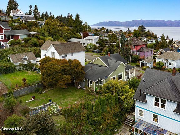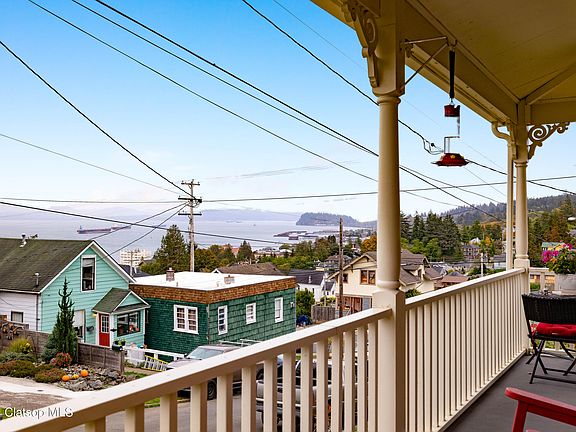 Own a piece of history with this North Slope Victorian era home built in 1896 by Astoria socialite Andrew Dalgity. Just 7 blocks to downtown Astoria. Enjoy views of ship lights on the Columbia River, Astoria Column and the lights down town of Astoria from the covered wrap around front porch, living + dining rooms and kitchen. Inside you will find an updated kitchen with white quartz countertops and slate appliances. Large backyard with mature landscaping, stone patio and fire pit.