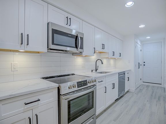 Full size washer dryer. Newly constructed and beautifully designed modern apartment with attention to details AND hard to find bonus Large storage area AND nice rear patio sitting area. Lower level unit, designed by an architect. Features an extremely large white quartz countertop, large sink, whisper quiet Kitchen Aid dishwasher and large bedroom and large bathroom. Private front and rear entrance. Abundant recessed lighting throughout with central air conditioning and heating. Coat closet as well. Easy street parking. 12 - 18 month lease. Electric is only utility. Tenant is responsible for electric