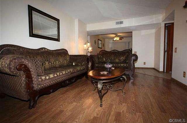 This End & Top level Unit is very Spacious. 3 Bedrooms and 2 Bathrooms. It is Located near Anaheim Plaza, all major Freeways, Shopping Centers and Schools. Living Room with Laminated Wood Floor has Access to a Balcony which is Great for BBQ. Ceramic Tile in the Kitchen, Dining Room and Bathroom's Floors. Large Master Bedroom with 2 closets. Granite Counter Tops in Kitchen & Hall way Bathroom. Inside Laundry Room. Outside Stair way on the left side of the property leads to the Garages. The First 2 Car Garage on the left is belong to this unit. Association Covers: Fire Insurance, 2 Swimming Pools, Club House, Hot, Cold Water, Outside maintenance & Roof.