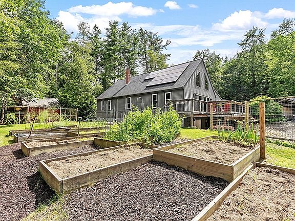 Welcome to serene living with this charming property! Nestled away with a private drive, this 3-bedroom, 1-bath home offers tranquility with generous distance from the road. Explore outdoor delights with a chicken coop, apple trees, roses, and perennial gardens. Two sturdy sheds, with 10-12 cords of firewood ready for a cozy winter. Enjoy evenings by the fire pit or pavilion, or relax on the expansive 54x12 deck equipped with 3 110V outlets, safety gates, and pet-friendly features. Power needs are met with 50 amp outdoor power, a whole house generator, and solar panels ensuring low utility bills. Unique double door access to the basement is available on both house ends, with plumbing roughed for a future bath. Ample parking adds convenience. The interior features a wood stove, new skylights, first-floor laundry, new well pump, and modern appliances including a propane kitchen stove. Updated efficiency through Mass Save and a wireless thermostat. 12x16 and 14x14 stick-built sheds