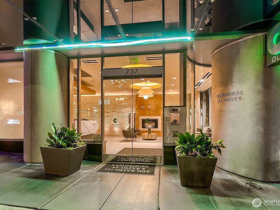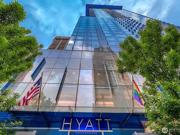 Above the Sparkling City lights of Seattle, enjoy floor to ceiling views of snowy mountaintops and the Bellevue Skyline 8 miles away. This lovely Southeast corner home features all the amenity one would expect above Seattle's premier Hyatt Hotel; unique access to 5-Star hotel amenities: 24-hour concierge, room service, Gym, sauna, steam room, saline lap pool & spa. Residents-only club features a BBQ terrace, dog lounge, grooming station and event room. Uniquely remodeled with a spacious chef's kitchen and extra storage space. Walk to shopping, theaters, restaurants, Amazon, Google, Apple and Meta, Whole Foods. Easy access to I-5, light rail & SLU streetcar. The veritable foodie paradise of Capitol Hill or Pike Place Market at your doorstep.