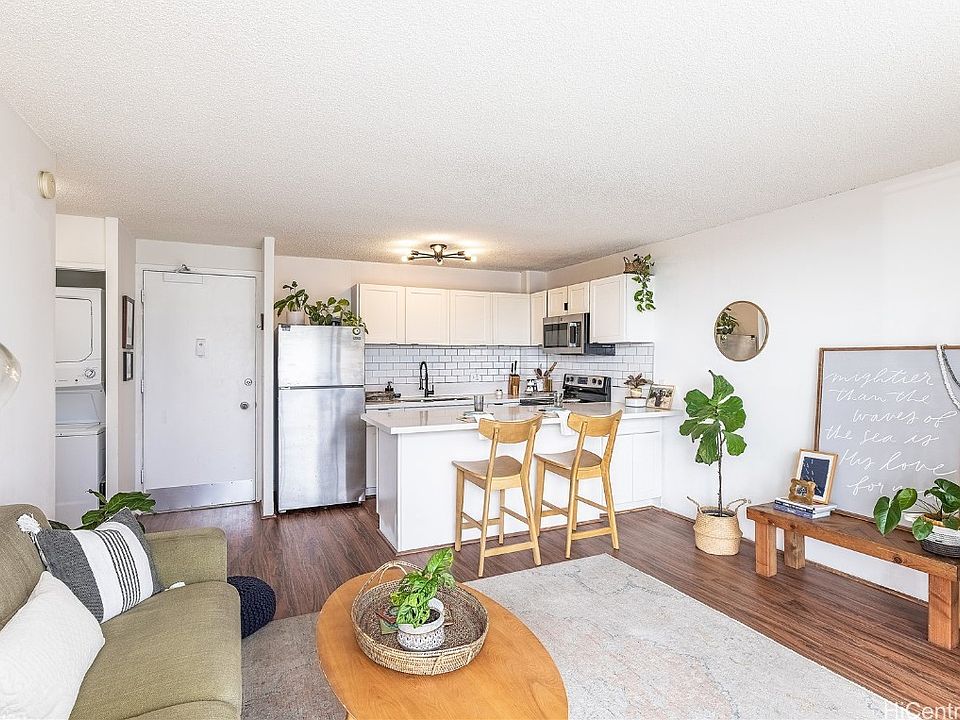Open House 3/19 2-5pm Beautiful Remodeled! Pet-friendly 1 BD/1BA high floor unit with exceptional trade winds flow and expansive mauka views. Secured/Covered parking stall, In-unit Washer/Dryer with electricity INCLUDED in its maintenance fee. Bathroom/Kitchen have been beautifully redone (with the latest renovation completed in 2021) along with new flooring, paint, and appliances. Summer Villa is conveniently located minutes from the heart of Kapahulu, Iolani School, Diamond Head, etc.