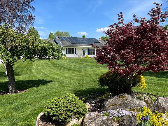 INCREDIBLE ONE LEVEL HOME-FEATURING EXTREMELY LOW ELEC. COSTS. BEST NEIGHBORHOOD AWARD. This meticulously maintained 1680 square foot residence, built in 2004, exudes timeless elegance and modern comfort. Step inside to discover a luminous interior boasting vaulted ceilings and East and West facing windows that bathe the space in natural light. Gleaming wood flooring and stylish vinyl sets a sophisticated tone. Sunroom with a cozy propane stove, offers a warm retreat for all seasons. The galley kitchen, showcases high ceilings, updated stainless steel appliances, and ample counter space, making meal preparation a breeze. Adjacent, a convenient laundry area ensures practicality in daily chores. Entertaining is a joy with the seamless flow of the open floor plan, leading from the sunroom to a dining area and out to a deck overlooking perennial gardens - ideal for summer dining and relaxation on the front covered porch. Primary bedroom is secluded on one side of the home, while two additional bedrooms and a family bath are tucked away on the opposite end. Need more space? Basement offers endless possibilities for expansion. Sustainability meets savings with top-of-the-line utilities and a photovoltaic roof solar system, guaranteeing exceptionally low energy bills. The Tesla battery ensures the lights stay on being an added comfort. An attractive paved driveway welcomes you home, while manicured gardens and trees add CURB APPEAL. ENJOY BEING MINUTES TO KILLINGTON SKI AREA.