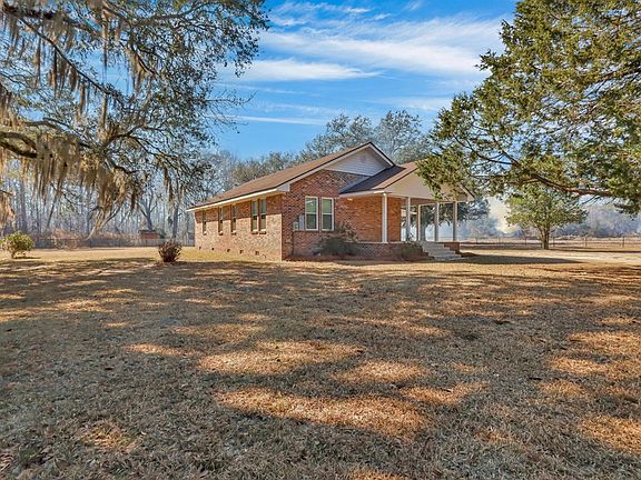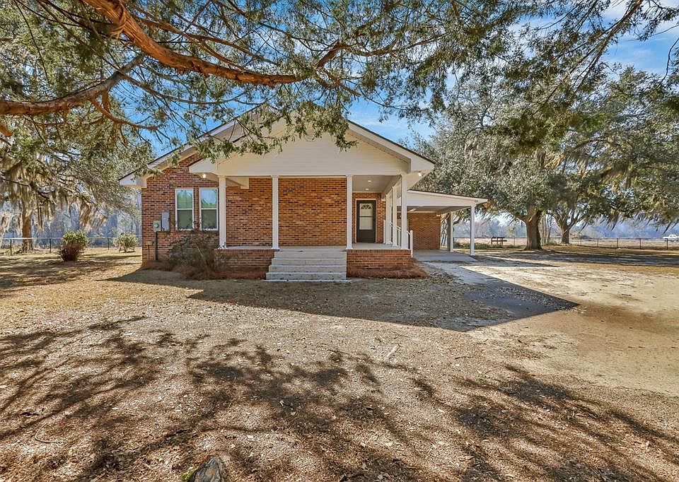 This meticulously remodeled, all brick farmhouse is tucked away under hundred-year live oaks on a little over two acres. Out the back gate you'll find a large well house and separate powered workshop and can enjoy the northern bank of the newly redug pond. The rocking chair front porch welcomes you into this completely renovated home. The resurfaced original hardwood floors are accompanied by a heart of pine fireplace mantle, and wide craftsman style trim throughout for a luxurious low country feel. The beautiful new kitchen features a farmhouse sink, stainless steel appliances, granite countertops, a breakfast bar, and pantry. The owner's suite has a stunning four-piece ensuite bathroom, with a large standalone shower and deep soaking tub. Schedule your virtual or in person tour today!
