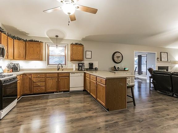 Fabulous 3 bedroom, 2 bathroom ranch located in a desirable neighborhood. Open kitchen/living room with vaulted ceiling boasts a 2-sided fireplace sharing with the formal dining room. The sliding glass doors in the dining room allow an abundance of natural sunlight and lead to a sizeable deck and fenced backyard. The spacious main entryway has many possibilities which was once a rec room and is currently an office. The roomy primary bedroom has tray ceilings and a walk-in closet in addition to a second closet. Oversized 2-car garage and shed allow great storage. Updates include freshly painted, vinyl and laminate flooring, 2 sumps back-up with alarm (2016), A/C (2018), furnace (2018) and hot water heater (2019). Schedule today, this won't last long!