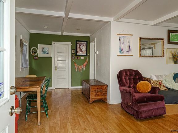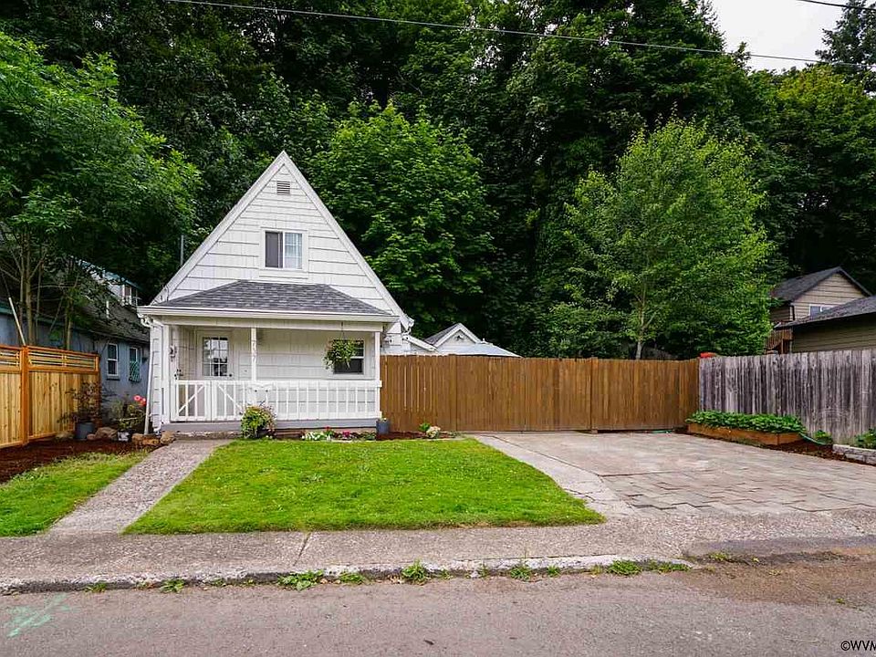 Accepted Offer with Contingencies. Adorable home nestled among the trees in friendly W. Salem neighborhood. Apple tree, strawberries, raspberries & space for gardening highlight the large park-like yard that also includes a slide & a storage shed. New paint inside & out, built-in-shelves, patio, & young roof make this affordable gem move in ready. Ideal starter or perfect down-sizer. Cozy upstairs master bdrm has large glass windows, enough space for an office,an attached half bath & large closet. Loads of unique charm! Easy commute downtown