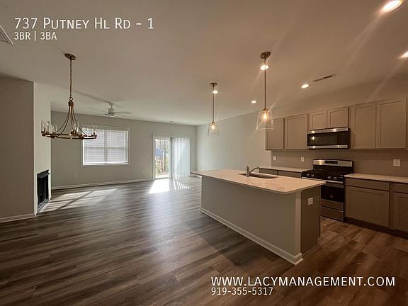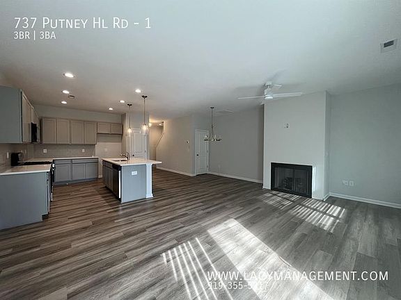 This 1688 square foot townhome home has 3 bedrooms and 2.5 bathrooms. This home is located at 737 Putney Hill Rd #1, Zebulon, NC 27597.
