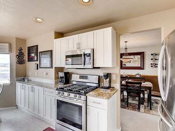 Awesome Mountain Views* Huge backyard-no homes behind*Low taxes* Updated 2 Story home located in cul-de-sac! Great foyer with beautiful updated stairway,vaulted ceilings in living room. Nice formal dining room. Brand new updated kitchen with gorgeous white cabinets, granite countertops,glass tile backsplash, stainless steel appliances! Kitchen with eat in nook open to living room with built-ins & cozy gas fireplace. Walk in from the garage into the mud area/laundry room. Vaulted Master Suite with updated Master Bath! Three other bedrooms upstairs(walk-in closets)one doubles as an office! Head downstairs to your finished walk-out basement with home theatre room, great bar area, and flex room with large bathroom that could be used as an in-law suite! Large yard with gorgeous panoramic mountain views. Enjoy sunrises and sunsets from your new large deck! Great location near shopping, parks, MAC Center, trails, restaurants, etc! Easy access to I-25. Plus a Radon Mitigation system.