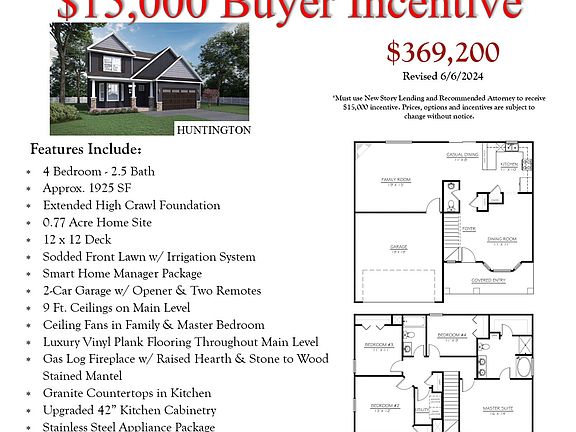 $15,000 Buyer Incentive w/ our Preferred Lender and Closing Attorney!! New home to be built in Shady Grove Hills community. 4 bed- 2.5 bath, approximately 1925 sq. ft, on 0.77 acres. High Crawl Foundation - 12 x 12 Deck - Sodded Front Lawn w/ Irrigation System - Smart Home Manager Package - 2-Car Garage w/ Opener & Two Remotes - 9 Ft. Ceilings on Main Level - Ceiling Fans in Family & Master Bedroom - Luxury Vinyl Plank Flooring Throughout Main Level - Gas Log Fireplace w/ Raised Hearth & Stone to Wood Stained Mantel - Kitchen Features Granite Countertops, Upgraded 42" Kitchen Cabinetry & Stainless Steel Appliance Package - Ceramic Tile Flooring in Master Bath - Double Sinks w/ Garden Tub & Separate Ceramic Tile Shower in Master Bath **1+8 Builder Warranty Included**