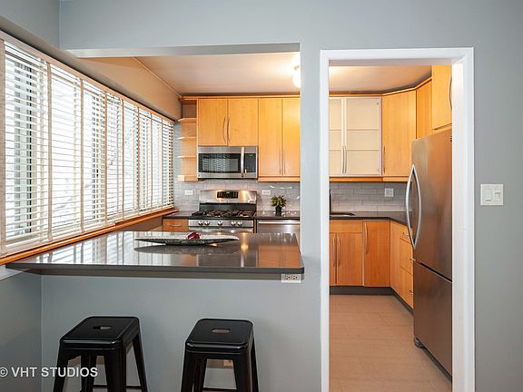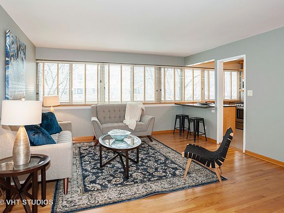 Spacious and bright corner condo with tree-top views with an owned, heated garage space. The kitchen was recently updated with in-unit laundry, new quartz counter-tops, stainless-steel appliances, stylish back-splash, and tasteful tiled floor. The unit has beautiful hardwood floors, central air and heat, separate dining area, expansive windows, abundant closets and storage. Additional free laundry is also available in the building. This is a well maintained, non-smoking, elevator building with secured entrance. Walking distance to both Metra and CTA trains, shops, restaurants, parks, and Lake Michigan. Gorgeous private garden right out back for the building. Check out the reasonable taxes and assessments! Cats welcome. The HVAC system is currently being replaced and the owner has covered the special assessment for this unit. Rentals are allowed after 2 years of owner occupancy.