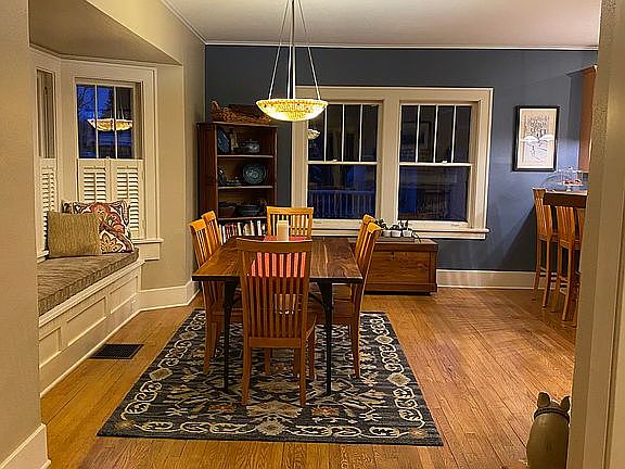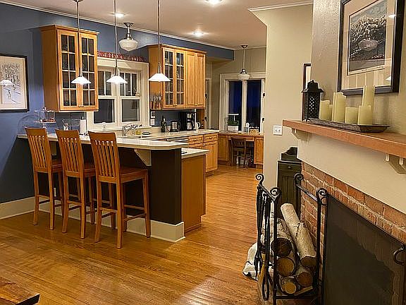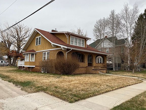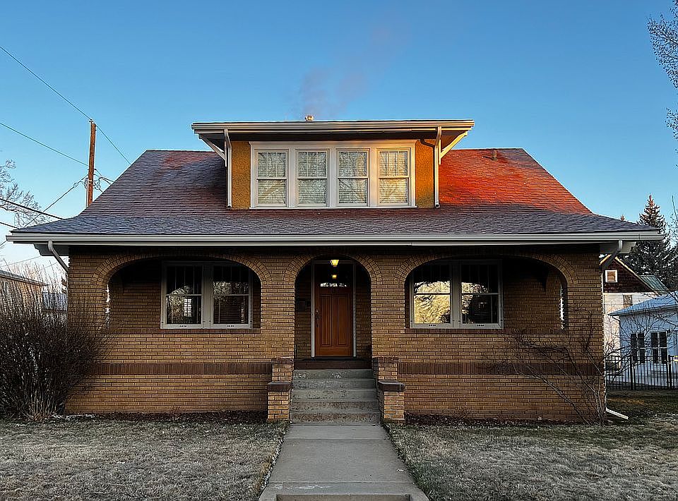Beautiful 1918 brick and stucco craftsman bungalow in coveted neighborhood. This 3 bedroom, 3 bath home boasts a modern semi- open floor plan, but retains its historic charm. With hardwood floors throughout and updated finishes, it lends itself to comfortable in-town living. The main floor hosts an open kitchen, dining and living area as well as library with bath. The stunning double-sided Lander brick fireplace is the centerpiece. Upstairs are three bedrooms and large updated four-piece bath. The partially finished basement makes for a great family room or extra non-conforming bedroom with its full bath and comfortable carpet. Laundry and lots of storage make up the rest of this full basement space. The 2-car heated garage, built to match the character of the main home, provides a 300 sq ft studio with bath, perfect as an office or extra guest space!