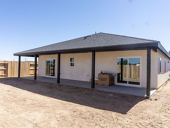 This new construction home has been built in a modern farmhouse style and is completed and ready to ooccupy. The 4 bedroom 2 bath home has a spacious kitchen with solid surface counter tops and a huge walk in pantry. 3.080 of Paid for solar is included, The home has a large covered patio that extends the full length of the entire width of the home. Two large sliding glass doors exit from the family room and the master bedroom onto the generous sized exterior entertainment area so your family can enjoy the backyard. Easy to maintain Luxury Vinyl Plank Flooring is installed in the main living spaces, kitchen, laundry and bathroom. The bedrooms have cozy plush carpet. Both bathrooms have solid surface counter tops and generous storage space. The garage is fully finished and also a generous size. This property is located on a street with easy access to a bus stop and center of town. Interior photos of a similar completed home colors and amenities are same. Contact agent for details.