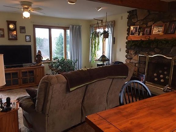 This custom built home offers abundant indoor and outdoor entertaining opportunities, which is perfect because it is located directly on both the SNOWMOBILE AND the ATV trail! The original part of the house was built in 1985, and the addition with the unique 3 story 'tower' is newer. This part of the house has radiant heat. The home is spacious, including the 28 x 28 great room over the garage. The living room features open concept with a wood burning fireplace with so you can enjoy the family and guests while prepping in the kitchen. First floor bedroom and bath for convenience. The large basement has an oversized wood stove to warm you as you gather after sledding. The laundry, mechanical and lots of storage are here as well as an entertaining pool table! The heated garage is extra large with two additional bays that will fit the sleds and mower. This home is situated at the top of South Hill with incredible views. It's time to get out of the city and enjoy the rural life!