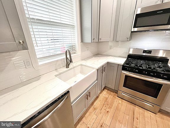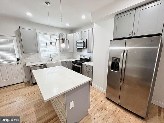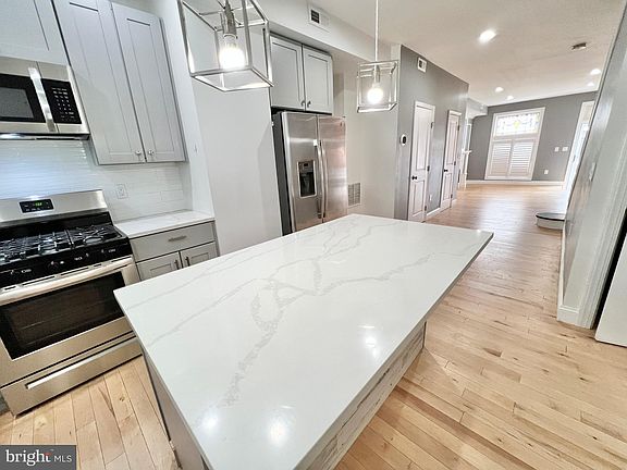 Welcome to 737 S Potomac St in the heart of Canton with 3 bedrooms & 3.5 baths. Fully rehabbed in 2021 this house has a rooftop deck with amazing city & water views, a parking pad and a fully finished basement. Walk into your beautiful gourmet kitchen with an island, a beautiful farmhouse sink, tile backsplash, light grey cabinets, stainless steel appliances and white quartz countertops. This kitchen has plenty of counter space and is great for all you cooks out there! With recessed lighting and modern pendant lights over the island this will be the center of your new house! Hardwood floors throughout on the main floor and carpet in the upper bedrooms . Enjoy a large bonus walk-in closet on the bedroom level! Half bath on the main level is very convenient as well! This house is 5 blocks to the waterfront and close to great shopping in Canton, Johns Hopkins and 95. This house is a must see!