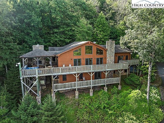 Welcome to your dream mountain lodge retreat! This spectacular lodge offers unparalleled privacy and breathtaking gorge views, all just minutes from downtown Blowing Rock. The grand great room features a vaulted ceiling and a wall of windows, perfectly framing the stunning mountain view. This exquisite property includes three master suites with en suite baths, plus a family room with an additional bath to accommodate overflow guests. Cozy up by the beautiful stone fireplaces in both the great room and family room, or retreat to the expansive master suite with direct deck access. Enjoy the outdoors year-round on the covered living deck, complete with a stone fireplace and electric roll-down enclosures. Multiple wrap-around decks, a hot tub with awe-inspiring gorge views, and a game room with a billiard table provide endless entertainment options. Nestled on two large lots, less than 4 miles from Main Street in Blowing Rock, this lodge offers end-of-the-road privacy and the serene sounds of nature. Furnishings are negotiable, making this the perfect turnkey retreat. The property also features a generator and Trex decking for added convenience and durability. Ample parking for guests and family including an oversized two car garage. Each lot has a working well should future owners wish to explore developing the adjoining lot. Exterior of home including exterior stone work painted and sealed in 2022 Experience the ideal location, close to The Blue Ridge Parway, shopping, fine dining, hiking trails, ski slopes, and all the wonders of the High Country. You have to experience how peaceful it is! Don’t miss this rare opportunity to own a piece of paradise in the awe inspriing Blue Ridge Mountains.