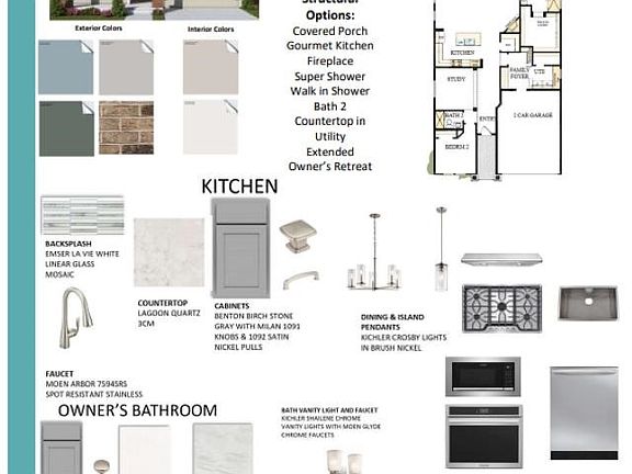 Wallridge floorplan features extended owner's retreat with super shower. Fireplace in Family room, open concept to gourmet kitchen. The best of 1 story living with large laundry room, open study and secondary bedroom and bathroom.