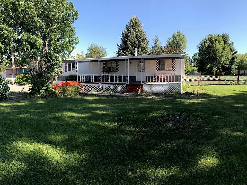 Beautiful parcel located west of Blackfoot on a 2.57 acre parcel. This Broadmore single wide manufactured home with added additions is a great opportunity for someone looking for with privacy from trees planted many years ago. Several outbuilding including a shop/garage. Four water shares with Parson Ditch Co.