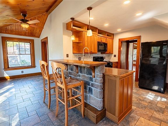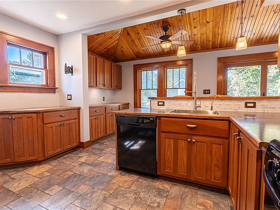 Charming, Craftsman-style Cape with much to offer! SPACIOUS MAIN LEVEL features an UPDATED KITCHEN (2022) with a vaulted tongue & groove wood ceiling, solid wood, shaker-style, soft close cabinetry, LOADS of storage & counter space, 6 NEW Andersen windows, a convenient counter bar, plus enough room for a small breakfast table, and a slider to the 2-level deck & FULLY FENCED doggy zone!