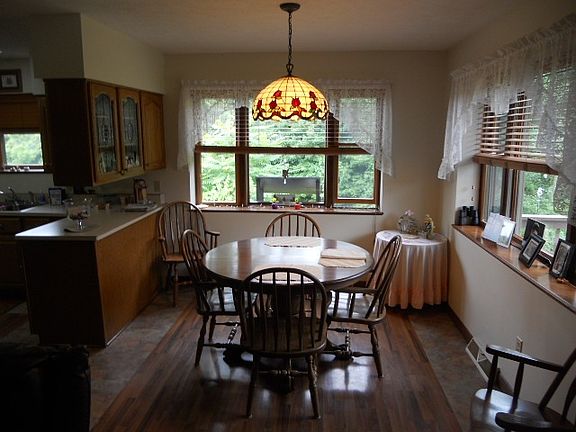 Anderson windows, laminate flooring, surround sound, poured foundation by Blue Maxx insulated concrete forming, geothermal heating/cooling system, high ceilings in basement. Large detached garage.
