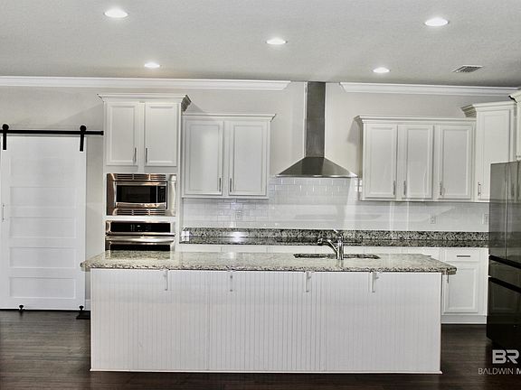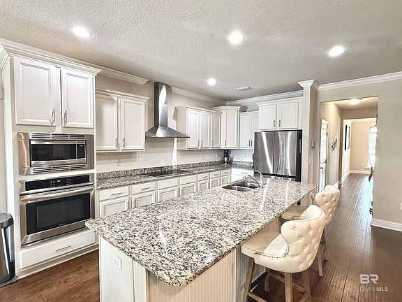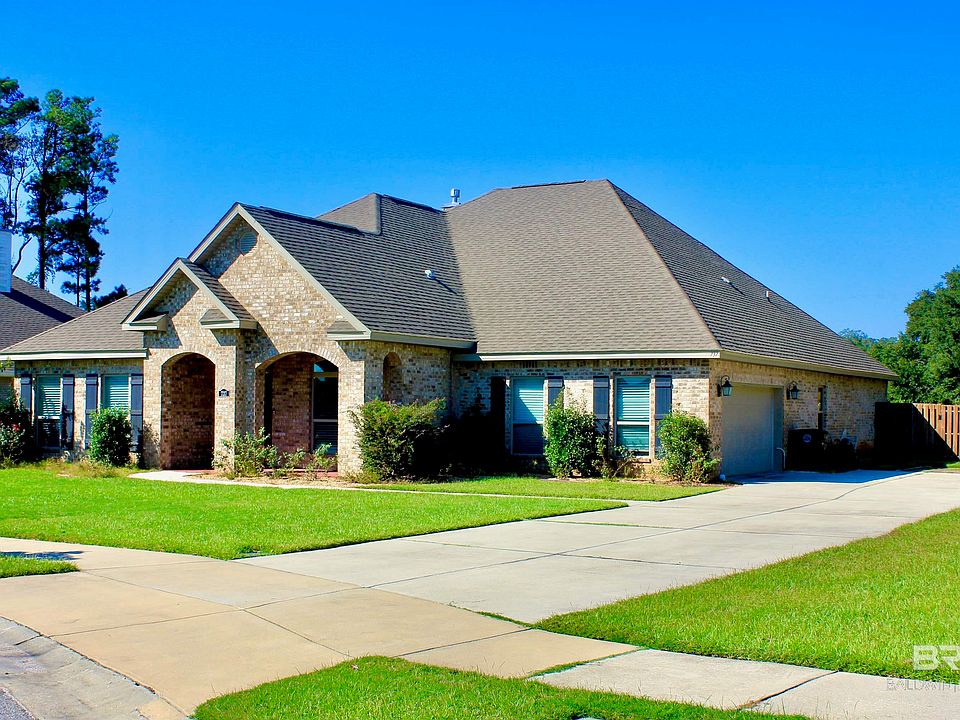 Welcome to this beautifully maintained Gold Fortified home offering five bedrooms, three full baths, and over 3,100 square feet of living space. The functional floor plan includes a formal dining room, a dedicated office or flex space, and an open living area with high ceilings, crown molding, and a gas fireplace.The kitchen features granite countertops, stainless steel appliances, a large center island with seating, and an induction cooktop, providing both style and practicality. The spacious primary suite includes two walk-in closets and a 5-piece bath with double vanities, a soaking tub, and a separate tiled shower.Four additional bedrooms offer generous space for family, guests, or hobbies, along with two additional full baths for convenience.The backyard includes a covered patio, raised garden beds, and a permanent storage shed—ideal for outdoor use and additional storage. The property is located in a quiet Fairhope neighborhood close to schools, shopping, and downtown amenities. Community Pool, Baseball diamond and Clubhouse with outdoor kitchen for everyone to enjoy! The Gold Fortified construction provides added durability and potential insurance savings. Buyer to verify all information during due diligence.