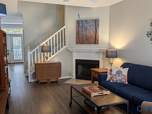 PRICE REDUCTION! Charming two story town house full of light. Open floor plan on first level. French doors in great room open to front porch. Dining area has French doors with private wooded view. Well-designed kitchen with island, loads of cabinets, dishwasher & room for sharing cooking duties. Upstairs are two big bedrooms, each with ensuite baths, one with garden tub, the other with step-in shower. Walk-in closets in both. The loft could be home office, craft space or reading room. In bad weather, you'll appreciate the attached garage. Located in the village of Midlothian, you're minutes from 288, Midlothian Turnpike, and other highways but also near the new Coalfield library, Coal Mines Park, Brightpoint Community College, shopping, restaurants and other amenities.