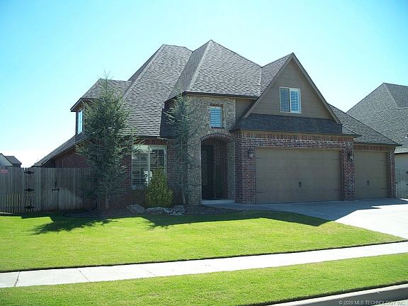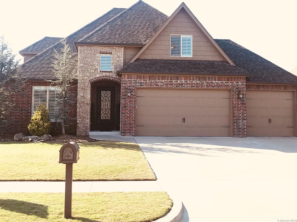 Bixby schools! Quail Creek 2-story, 4 BR, 3 baths, 3-car garage. Mstr. bath has his/hers granite vanity tops & enormous closet. Open plan, elegant family room w/stone FP. Gourmet kitchen has B/I appliances, large island w/granite countertop & sink, large dining area. Huge walk in pantry. Separate laundry w/sink. Private office/study. Upper floor recently finished, can be large 4th bedroom/guest room with full bathroom. Cov. patio. HWD floors, tile, plantation shutters, built in humidifier and lots more.