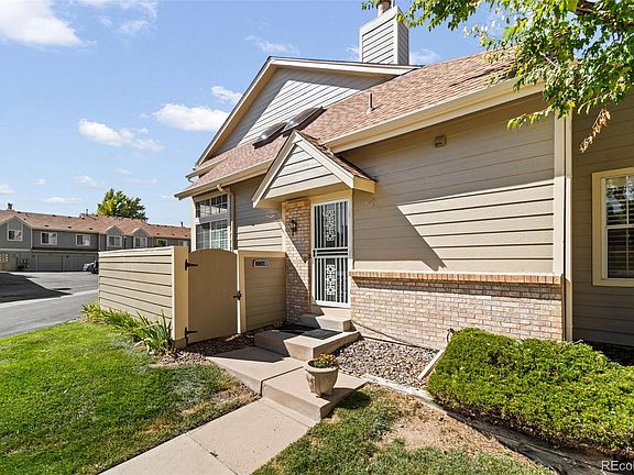 Infused with natural light, this bright corner townhome showcases open and airy interiors. An earthy tiled entryway leads into an open-concept living space grounded by a fireplace and nestled beneath vaulted ceilings. The nearby kitchen offers a pass-through window for a seamless transition between the dining space and prep area, while also affording room for an additional eat-in nook with access to the private outdoor deck. A main-floor bedroom with an en-suite bathroom presents flexibility as a brightly lit office space. Retreat to an upper level that encompasses a skylit loft area and a spacious primary suite accessible through French doors. The en-suite bathroom includes dual vanities and a window for supplemental illumination. Additional space to host is found in a finished lower level complete with a bedroom, bathroom and laundry area. Residents are treated to easy access to the community pool and tennis courts, as well as close proximity to Cherry Creek trails and Chennai Park.
