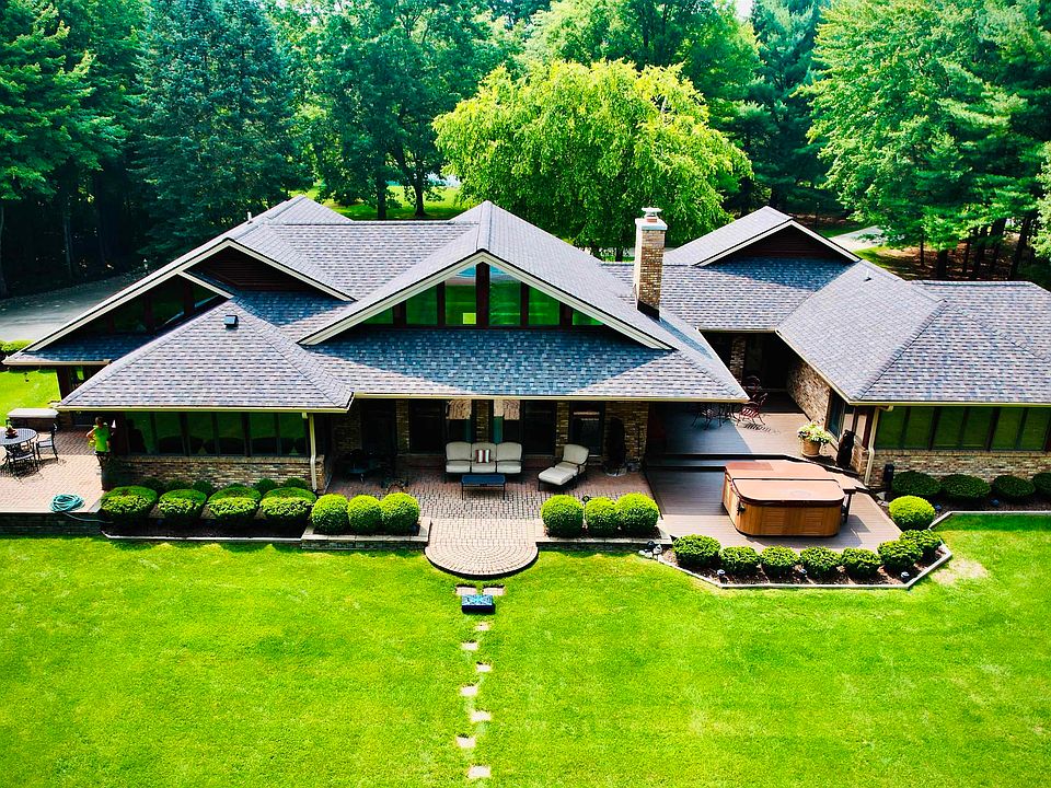 Sprawling brick ranch is Richard Harris design with over 4,300 sq ft of living space on a serene picturesque wooded 17 acres having a stocked, aerated pond with a fountain and rowboat. Stunning master suite has his/hers walk in closets, walk in shower, whirlpool and sliders to composite deck (3 yrs) and hot tub. Woodcraft custom kitchen with granite island comes equipped with all appliances. Main floor laundry room convenience includes washer and dryer. Soaring cathedral pine ceilings and Idaho Ledge Rock fireplace create a stunning great room complete with full window wall to view the woods and 20x40 heated pool and cedar lined changing house. Finished day window lower level has home gym, pool table and full bar. 53x31 finished barn has full basketball court. Include: great room TV, pool table, rowboat, pond fountain. Pool equipment. Anderson windows. Seller prefers 8/15/24 occupancy. Roof and gutters (2022). Furnace and AC (2017). 4th bedroom is currently sitting room with french doors. Electric Pool cover is being replaced in June by seller.