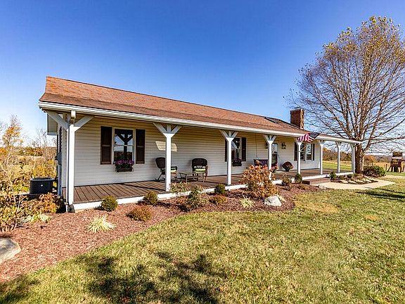Private Country Setting!! Gorgeous updated 3 bedrm Timber frame ranch on 8 acres. Features Lrg covered front porch, 1st flr master & laundry, open concept w/vaulted ceilings, wood stove, New hardwood floors, walk-in closets. Stunning DR, Gourmet Kitchen w/granite tops, slow close wood cabinets, copper sink, and lrg island. Huge finished LL w/family room, study, storage area and walkout to stamped concrete patio and NEW above ground pool. 4 acres fenced, 30x40 Pole barn garage w/lean-to(electric and concrete floor) All appliances!! MUST SEE THE VIEWS!!!