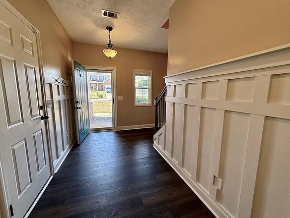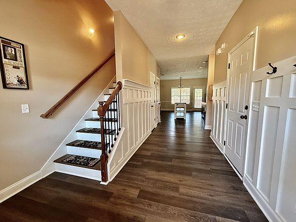 Beautiful home situated on a level lot with a spacious, fully fenced backyard, perfect for outdoor living and entertaining. The covered front porch leads to a welcoming foyer with elegant judges paneling and durable life proof laminate wood flooring. From the foyer, you'll enter the open-concept family room and kitchen, creating a seamless flow for everyday living. The eat-in kitchen features granite countertops, a subway tile backsplash, a wood accent island, breakfast bar, pantry closet, and a full complement of stainless-steel appliances, including the refrigerator. The family room is highlighted by a fireplace with brick hearth and mantel. Arched openings add charm and lead to the open-concept dining room. Also on the main level are a half bath and storage closet. Upstairs, the master suite awaits with double doors, a tray ceiling, laminate wood flooring, and an ensuite bath. The master bath boasts a double granite vanity, inset shower, separate soaking tub, water closet, and a large walk-in closet. Three additional bedrooms share a full hall bath. Also included upstairs the laundry room and pull-down attic stairs for extra storage. Enjoy a great backyard space with privacy fence and featuring a 10'x30' covered porch with two ceiling fans, perfect for grilling and outdoor gatherings. Two-car garage. Alarm system. Zoned for Mathews Elementary, Aaron Cohn Middle and Shaw High Schools.