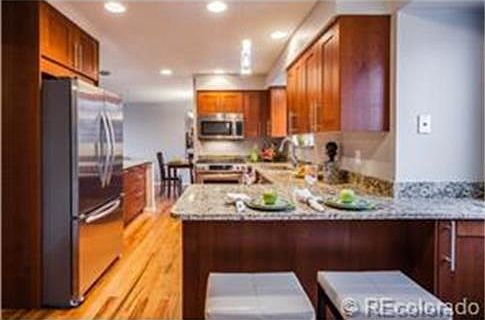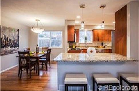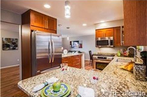 Stunning remodel in one of Arvada's most coveted neighborhoods. Close to open space, shops, schools and so much more. This 5 bedroom/3 bath home feels like a brand new home. Large open floor plan is perfect for everyday living and entertaining. Gourmet kitchen is highlighted with granite, stainless steel appliances, pull up bar and opens to both the living room and family room. Master bedroom features stunning views to the west and has a gorgeous master bath with custom tile walk in shower. This home has 3 large bedrooms all on the upper level. Large private landscaped yard with storage shed creates a park-like setting. Make this your next dream home.