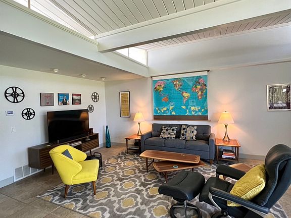 Classic mid-century modern condo in South Palm Desert. It is a 2 bedroom, 2 bath condo with a large den off of the master bedroom. My home is located on the historic Shadow Mountain Golf Course. The condo has new appliances and has been renovated to honor iconic 1964 mid-century architecture. The condo is available October to December 31, 2024. Due to city ordinance, a 1 month minimum rental is required. Due to HOA requirements, only 1 pet is allowed, which includes any visiting pets. All utilities will be included. Only 1 pet is allowed, per HOA rules. Pet must be leashed at all times outside of the unit and pet must be cleaned up after. No smoking is allowed.