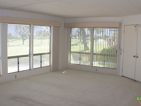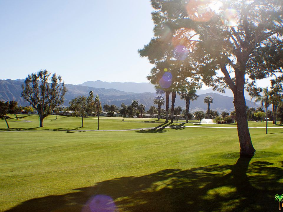 Fantastic south-facing lot overlooking the golf course with stunning mountain views on a quiet interior street. Great opportunity to get a prime location within Palm Desert Greens. 2 bedroom, 2 bath with formal living & dining room, family room and over-sized master suite. Covered carport, attached storage room with electricity & water, large covered porch overlooking the course. Bring your imagination to update this home. Palm Desert Greens Association fee of $267 covers golf, trash, and cable TV. Enjoy clubhouse with dining and bar, pools, tennis, pickle ball, bocce ball plus plenty of other activities in this gated senior community.