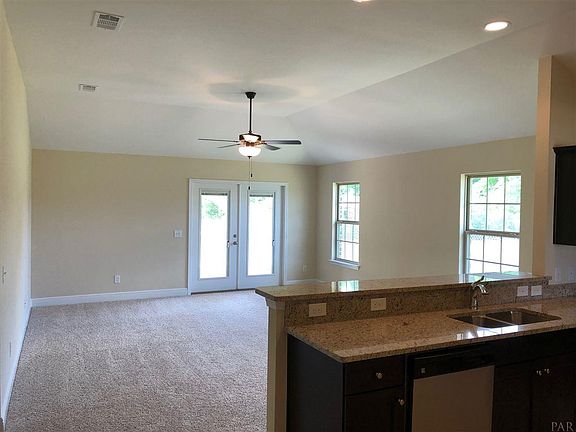 New construction home with dimensional shingles, full yard sod, hurricane window protection and wood flooring in the foyer. Tile flooring in all wet areas. Kitchen equipped with stainless steel Kenmore appliances and Granite Counter Tops. Cable outlets in great room and all bedrooms along with phone outlets in kitchen and all bedrooms. All bedrooms are wired for future fans. Master bedroom has trey ceiling with ceiling fan. Granite counter tops in all bathrooms as well as custom beveled edge mirrors. Master bath has garden tub, separate shower stall & double vanity area.