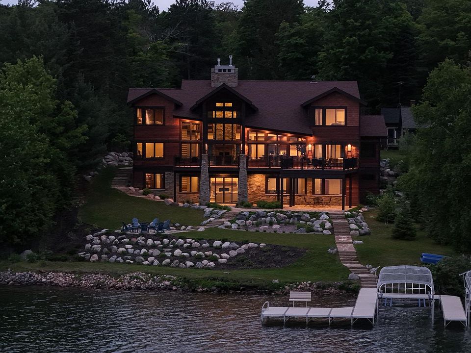 Newly constructed 6BR, 6BA on Lake Tomahawk a part of the Minocqua Chain of Lakes. Expansive 5,335 sq ft layout–inside, discover a gourmet kitchen with Wolf & Sub-Zero appliances & quartzite countertops. Two primary ensuites provide R&R, while the large bar & entertaining space in the lower level set the stage for unforgettable gatherings. Marvin Signature windows & doors frame stunning lake views, while 10ft ceilings in the walk-out basement create an airy atmosphere. A large lakeside composite deck offers the perfect spot to unwind and soak in the expansive views of the state land across the lake. High-end landscaping with stone walkways & fire pit beckon you to enjoy it. Fully furnished, this turn-key residence is move-in ready. 4-car att. garage w/in-floor heating as well! With 105 ft of prime southern exposure shoreline, you'll easily access 6,000 acres of water, bars, restaurants & entertainment. Don't miss this rare opportunity to own an unparalleled waterfront estate!