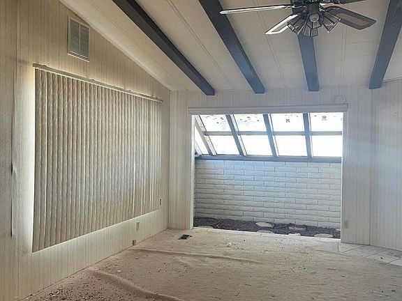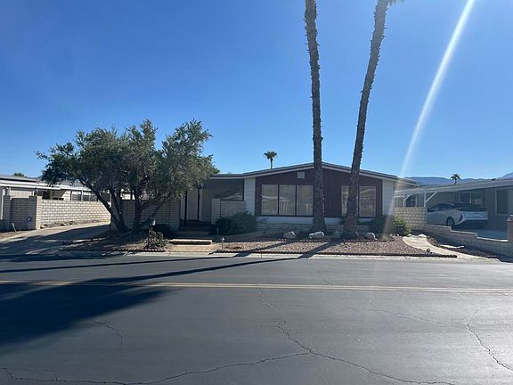 2 bedroom 2 bathroom manufactured home located in Palm Desert Greens. This home is in need of TLC which makes this a great investor special! Home has plenty of windows for great light in the front living room. Family room has a gas fireplace. Primary bedroom has a nook with slider which would make for a nice conversation area or reading nook. This home offers Inside Landry area. There is an attached outside enclosed area for extra space or workshop off the side yard. Desert Greens is a gated 55 or better golf course community where you own the land.