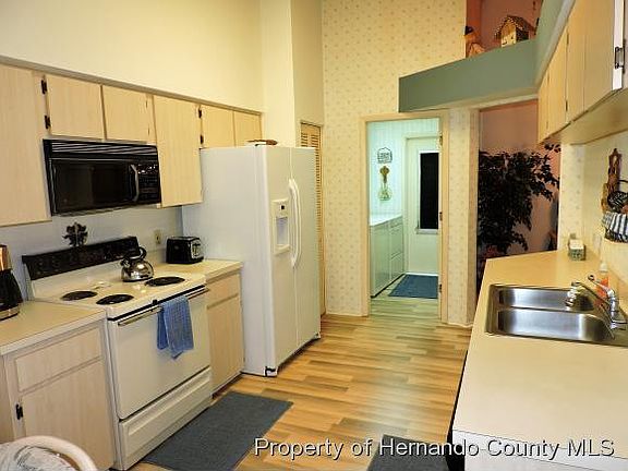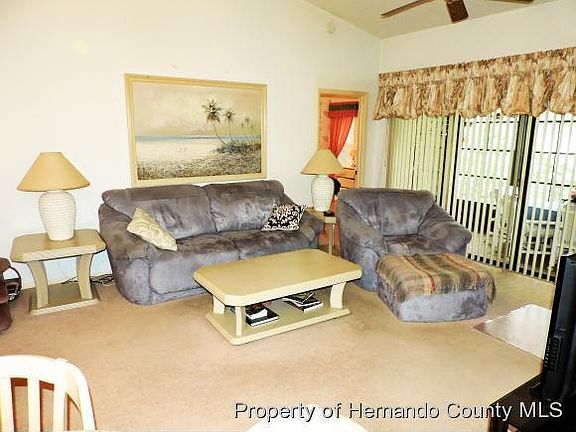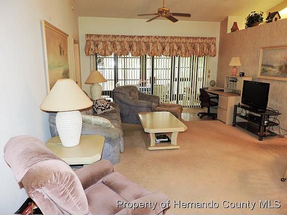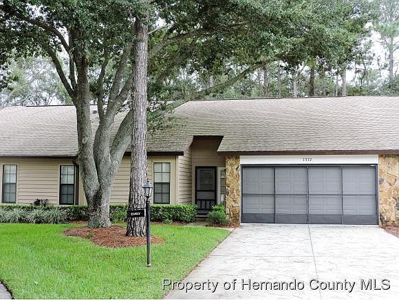Fully furnished Timber Pines Golf Course Villa on a cul de sac overlooking the first green of the championship course. 2 Bedrooms 2 Full Baths, Screened 2 Car Garage. Prime location. Wooded back yard. Great privacy - Tile Foyer - Vaulted Ceilings - Eat in Kitchen & Nook - Laundry - Golf Cart Included - Call Today.