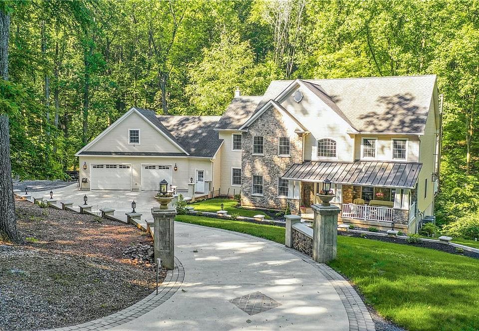 Forest Haven blends a serene natural setting & a beautifully appointed home on 10 PICTURESQUE ACRES. A WOODED HILLSIDE WITH A STREAM LEADS TO CLEARED ACREAGE AT THE SUMMIT, excellent for HUNTING, FOUR WHEELING, and exploring. Hand hewn oak floors accent immaculate rooms including a main level office, dining room w/tray ceiling and living room with wall of windows & built in bookcases. The heart of the home boasts a striking kitchen gleaming w/travertine, granite, & ceramic finishes. A Viking gas cooktop, walk in pantry, and tiered island with extensive prep space & seating stand ready for entertaining and the inviting Trex deck is a perfect spot to enjoy cocktails and sunsets. Lavish & large, the primary bedroom suite has a resort quality bathroom, incredible closet space & a private balcony. Partially finished, the walkout lower level w/full bath is excellent flex space to accommodate changing needs. An oversized 2-story attached garage shelters heavy equipment & vehicles.