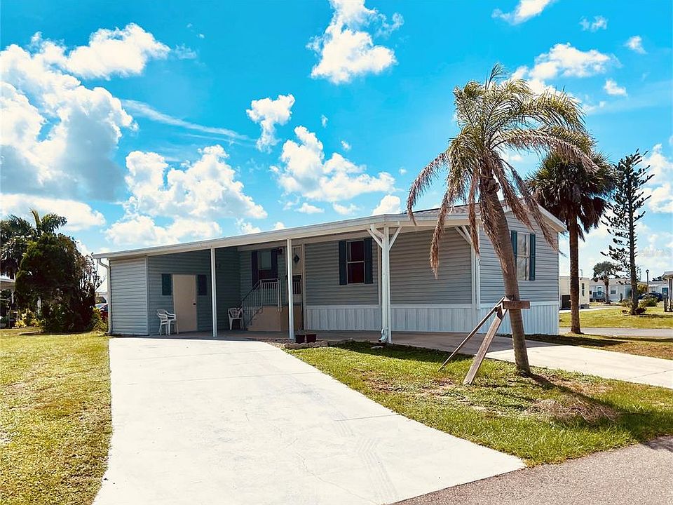 Here's your chance to own in the highly sought after Village of Holiday Lake. UPDATED, NEW ROOF! Newly re-leveled, vapor barrier and skirting NEW Living room floors, custom trim. 3 bedroom 2 Bath split plan is open and spacious sitting on a corner lot. Dual driveways give you plenty of parking space. Oversized carport with insulated roof panels keep even a large truck or SUV out of the weather. Inside open feel with cathedral ceilings throughout. Master Suite with his and her walk in closets and Master bath with double doors and linen closet. Interior laundry space. Separate attached woodshop/shed. The Village of Holiday Lake is one of the best kept secrets in Charlotte County. A popular waterfront mobile home community close to Boca Grande beaches, Englewood beaches, and popular eateries on the water and land. Land is owned not rented, low maintenance fees. Enjoy organized events, amenities, and golf-cart living in this active community. Low HOA fee includes a clubhouse with 2 pools, tennis, activity center, pickle ball, RV/boat storage, shuffleboard, and year round organized events. The community is located on the Butterford Waterway with boating access to the Gulf of Mexico.