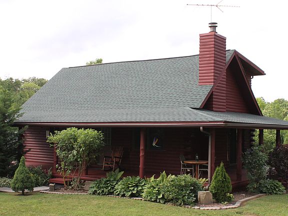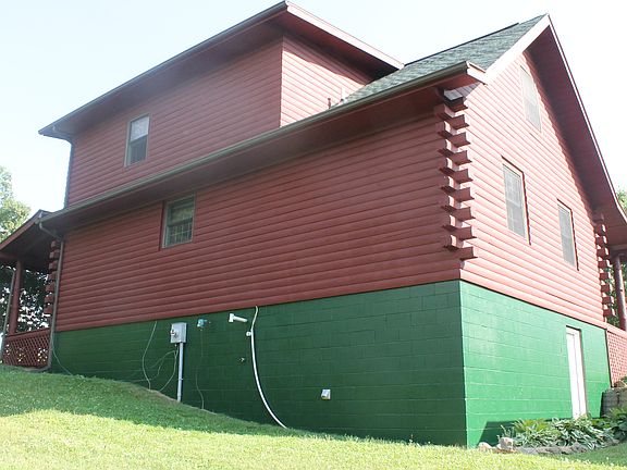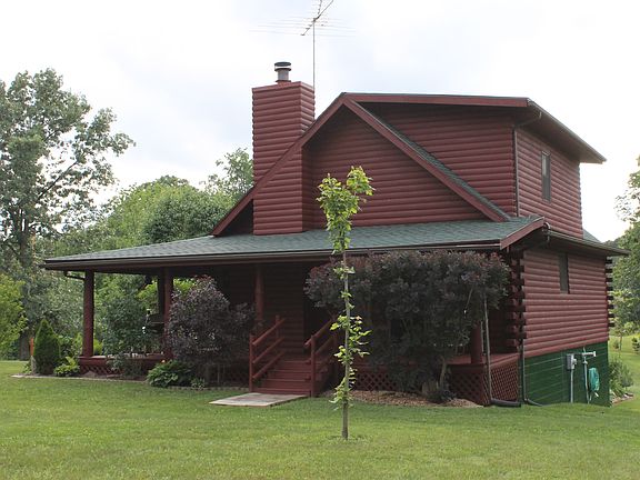 Log cabin on 5.05 acres. 2 bedroom, 2 bath, large garden tub, loft, fireplace, full unfinished walk out basement. Detached 2 car garage, 10X20 out building for garden equipment. New roof, new paint inside and out, large wrap around porch, park like grounds, partially wooded. Plenty of RV parking. Private well w/water system, septic tank. Mineral rights not included.