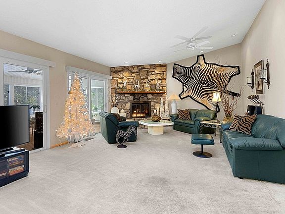 A private drive through the woods leads to this ranch style home situated on 6+ acres of peace and tranquility. A covered front porch greets you as you enter the foyer of this spacious open concept home. You'll be immediately wowed by the huge living room featuring a floor to ceiling stone fireplace and kitchen w/large center island. A large dining room is wonderful for entertaining. There's a beautiful family room that leads to the 3-season sunroom w/peaceful wooded views. The bedrooms are a nice separation from the main living areas. The primary bedroom with its own private bath offers a separate sitting area w/outdoor views. Located in a great recreational area w/golf course & State Park nearby and a short drive to Sturgeon Bay.