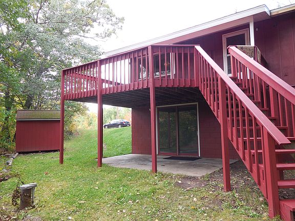 102.42' of shoreline, 3 bedrooms, full bathroom, living room, dining area, kitchen and laundry room all on the upper level. Lower level has full unfinished walk out basement with ample workshop area and 1 roughed in bathroom ready for your personal touches. For maximum comfort, home has 2 natural gas furnaces, one on each level, thermal pane windows, underground electric power, freshly stained decking and stairs leading to shoreline.