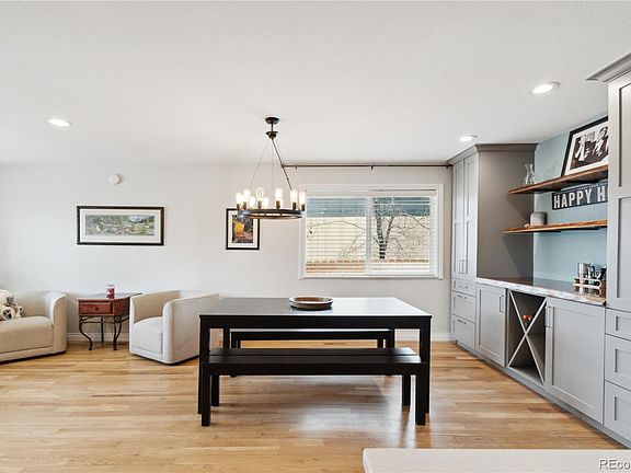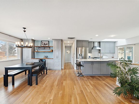 Radiance and convenience commingle in this well-appointed Columbine West abode. Low maintenance landscaping surrounds a stunning façade, welcoming residents into an open-concept main floor ideal of home entertaining. A vast picture window illuminates the formal living and dining spaces — the latter of which boasts a vast built-in bar and storage area. Nearby, a fully renovated kitchen (2019) flaunts stylish cabinetry, stainless steel appliances, quartz countertops and a skylight. An additional living space is grounded by a brick-surrounded fireplace and grants access to the backyard through sliding glass doors. Each of the five bedrooms is a luminous hideaway, from the upper-level oases to the basement-level retreats — granting residents generous flexibility for guests and home office spaces. Nestled on an oversized lot, the backyard is a hidden paradise surrounded by private fencing. New residents have endless options for gardening, entertaining on the patio or rejuvenating in the hot tub.