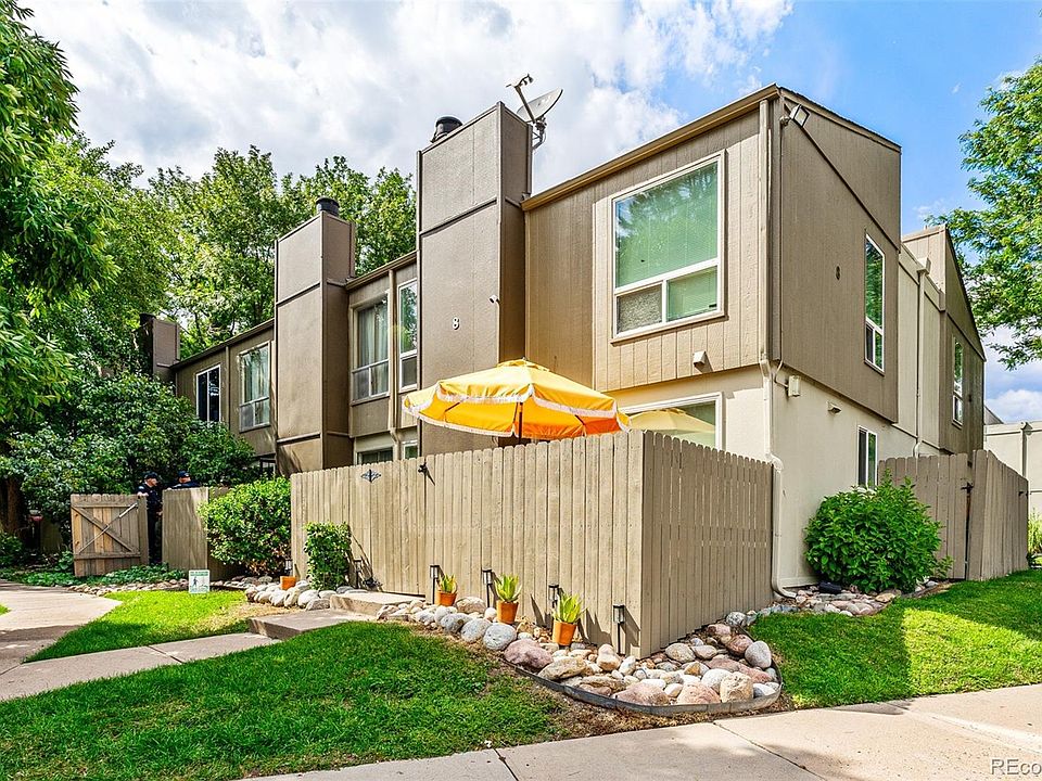 **OPEN HOUSE IS CANCELLED ON SUNDAY** Rare end-unit townhouse in the desirable Florida Park Condos! This home greets you with a private, fenced front patio and turf area, perfect for hosting guests and giving your pup space—there's even a convenient dog door. Completely move-in ready, the light-filled interior includes a beautifully updated kitchen, comfortable living room, and spacious bedrooms with treetop views. For seasonal gear and everyday items, you'll find ample storage under the stairs and large closets in both bedrooms. Standout features include in-unit laundry and central air (both are RARE in this community!), a new water heater, and the full HVAC system recently serviced. Exterior maintenance is taken care of by the HOA and the building was painted in 2022. Centrally located, Belmar Shopping District is minutes away giving you easy access to Whole Foods, King Soopers and Target, plus great options for coffee and dining. With two-bed, two-bath townhouses at this price point difficult to come by, you don't want to miss out. Come take a look!